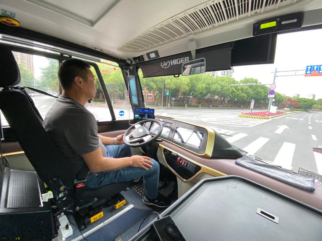 德清縣位于浙江北部,曾舉辦首屆聯(lián)合國世界地理信息大會(huì )。記者在該縣塔山森林公園公交站登上一輛純電動(dòng)公交車(chē),只見(jiàn)司機將車(chē)輛緩緩駛離車(chē)站后,開(kāi)啟自動(dòng)駕駛模式,隨后雙手離開(kāi)方向盤(pán)。車(chē)輛根據路況,按照路面標線(xiàn)、信號燈等自動(dòng)行駛,轉彎遇到人行道,會(huì )主動(dòng)停車(chē)讓行。