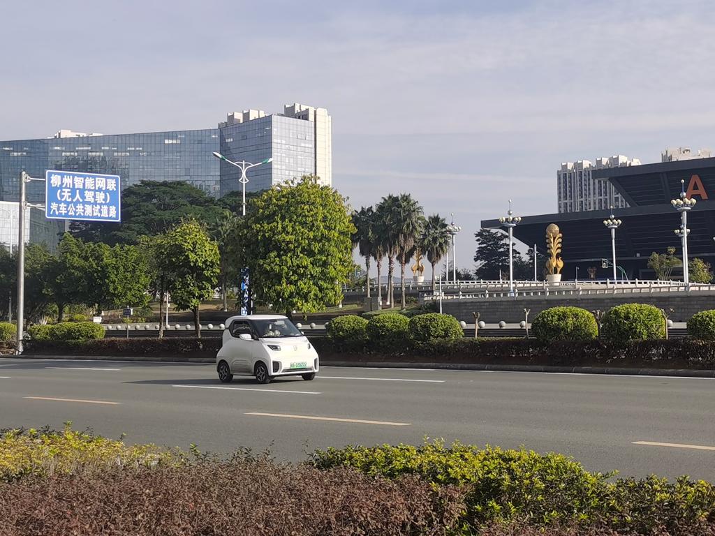 圖為一輛裝有智能網(wǎng)聯(lián)設備的汽車(chē)在廣西柳州測試道路上行駛。(李小林 攝)