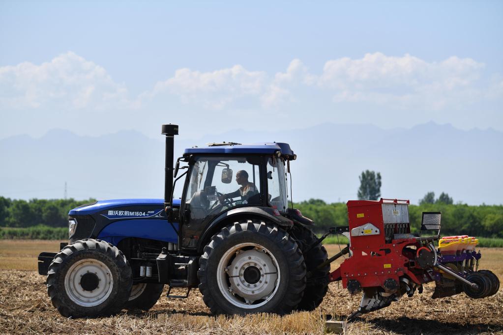 新華社西安6月16日電(記者孫正好、張博文)填種、加肥、開(kāi)播……在位于關(guān)中平原的陜西省西安市鄠邑區趙王鎮村,隨著(zhù)玉米深松精量播種機開(kāi)足馬力,殘留的麥茬被連根翻起,一粒粒玉米種子被埋進(jìn)土壤。