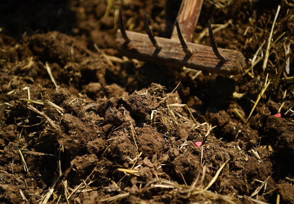 陜西省西安市鄠邑區趙王鎮村,農戶(hù)在已經(jīng)播種的田間松土。新華社記者 張博文 攝