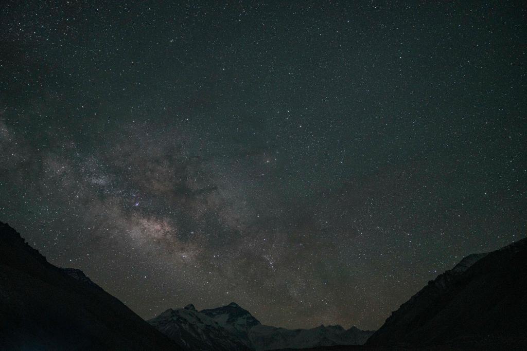 這是5月12日凌晨拍攝的珠穆朗瑪峰上空的銀河。新華社記者孫非 攝