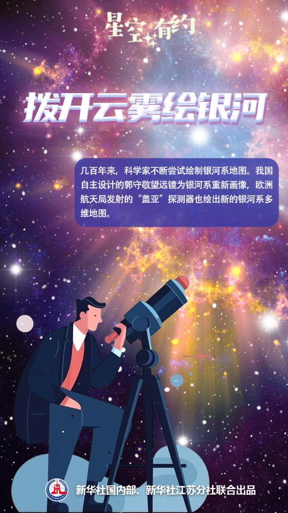 進(jìn)入21世紀,各國科學(xué)家繼續嘗試構建更精確完整的銀河系“地圖”。2011年起,我國自主設計的郭守敬望遠鏡開(kāi)始先導巡天,天文學(xué)家為銀河系重新畫(huà)像,發(fā)現它比原來(lái)認識的大了一倍。2013年,歐洲航天局發(fā)射“蓋亞”探測器,到2022年,其收集到的約20億顆恒星數據形成了新的銀河系多維地圖。