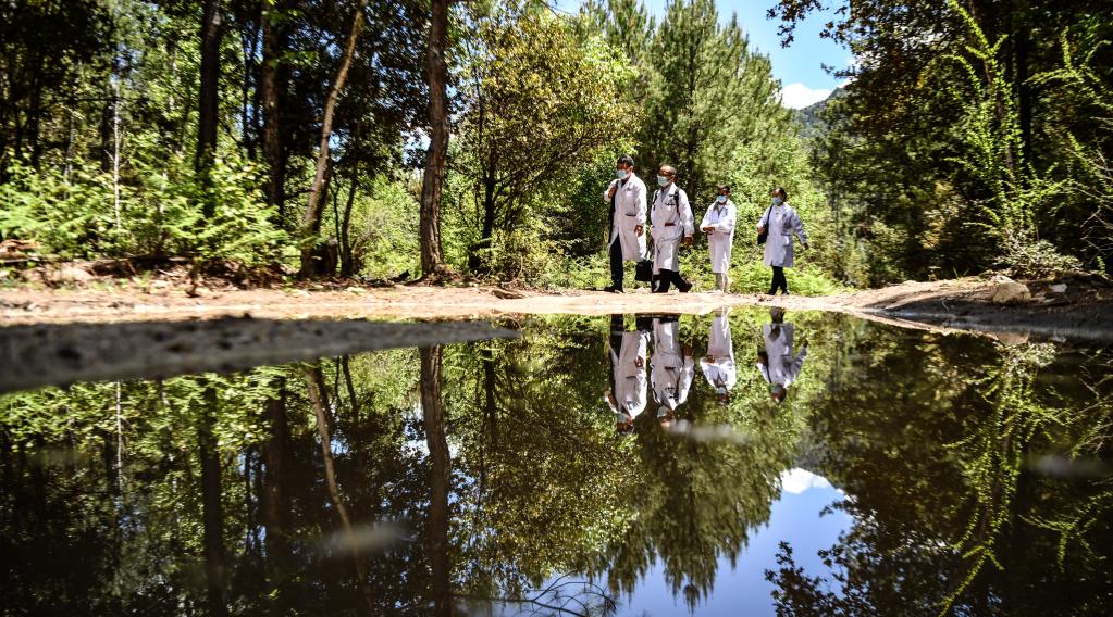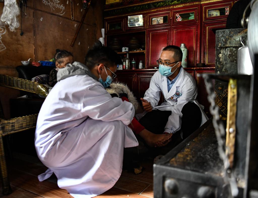 在米林的叢林中,珠海市人民醫院的援藏醫生王振疆手捧著(zhù)病人的腳,仔細詢(xún)問(wèn)病人的身體狀況,送去了援藏省市的關(guān)心,送去了藏漢一家親的問(wèn)候。