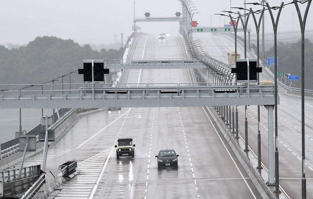 香港本地單牌車(chē)行駛在港珠澳大橋香港段(2023年7月1日攝)。新華社記者 陳鐸 攝