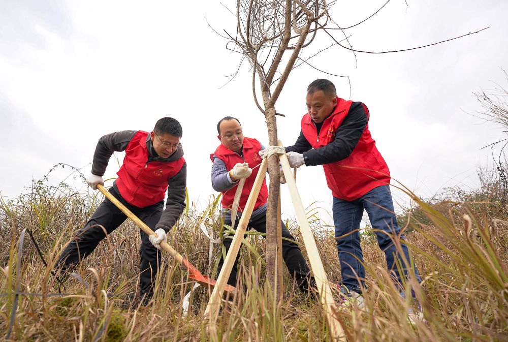 貴州近年來(lái)大力開(kāi)展植樹(shù)造林,重點(diǎn)在森林撫育、退耕還林、石漠化治理等方面下功夫。如今,貴州森林覆蓋率達62.81%,過(guò)去10年石漠化面積減幅達43%。2015年以來(lái),貴州省各級領(lǐng)導干部、基層群眾已連續9年在春節后上班第一天義務(wù)植樹(shù)?!皥猿衷从跓釔?ài),大家都想擁有一個(gè)以綠色為底色的多彩貴州?!庇衿炼弊遄灾慰h紅十字會(huì )常務(wù)副會(huì )長(cháng)胡攀學(xué)說(shuō)。