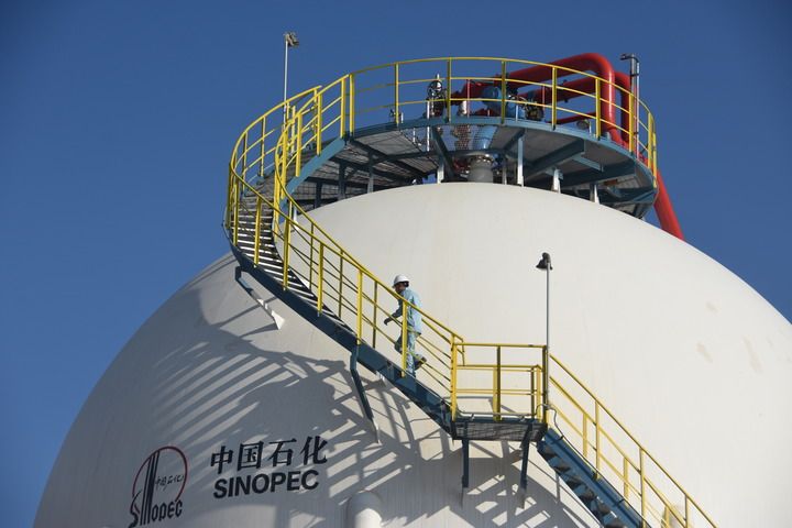 中國石化新疆庫車(chē)綠氫示范項目的員工對儲氫罐進(jìn)行巡檢(2023年6月30日攝)。新華社記者 顧煜 攝