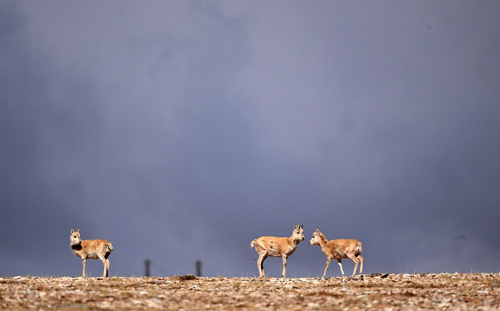 三只藏羚羊在三江源地區活動(dòng)(5月28日攝)。新華社記者 張宏祥 攝
