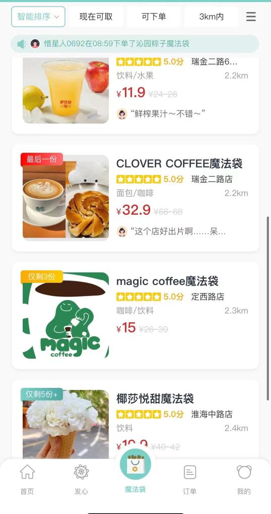 記者在上海登錄一個(gè)“盲盒”小程序,看到所在地周邊的部分商戶(hù)銷(xiāo)售一批名為“魔法袋”的產(chǎn)品,已經(jīng)吸引多個(gè)餐飲品牌加入。平均售價(jià)只有十幾元的“食物盲盒”,包含了多個(gè)烘焙產(chǎn)品。記者隨機選購了一款“魔法袋”,到店取貨后看到,售價(jià)11.9元的“魔法袋”里有4個(gè)蛋撻、2個(gè)肉松蛋糕。如果按照原價(jià)購買(mǎi),這些東西應該需要20多元。