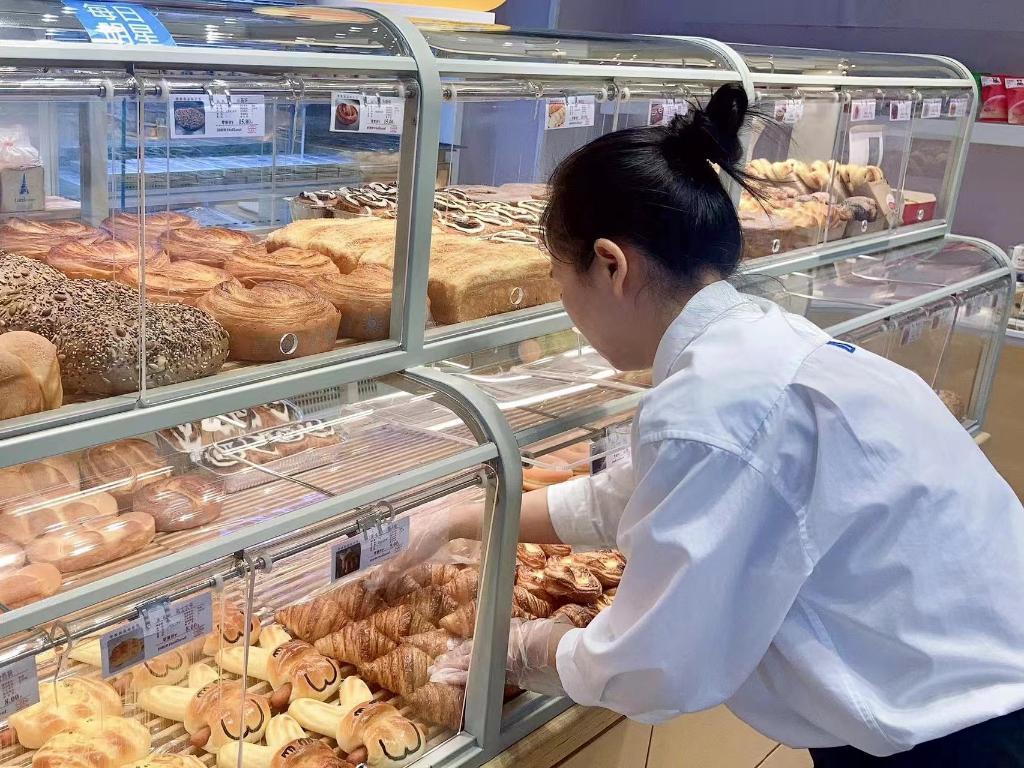 山西太原一家面包門(mén)店的員工正在整理烘焙鮮食。(受訪(fǎng)單位供圖)