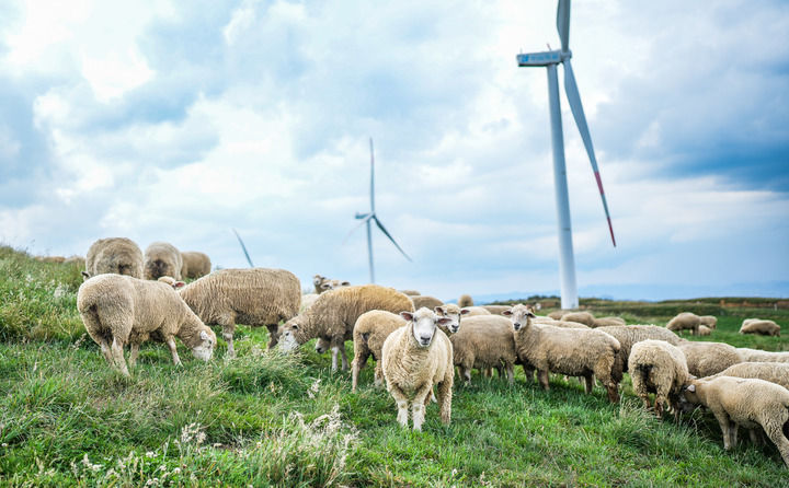 畢節威寧縣雪山鎮村民飼養的羊群在風(fēng)力發(fā)電設備下的草場(chǎng)吃草(7月13日攝)。新華社記者 陶亮 攝