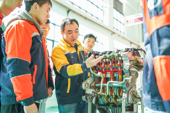 在貴州省畢節職業(yè)技術(shù)學(xué)院,“廣汽班”的學(xué)生在學(xué)習中(2021年11月18日攝)。新華社發(fā)(羅大富攝)