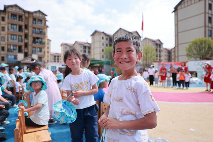 在貴州省單體規模最大的易地扶貧搬遷安置點(diǎn)畢節市七星關(guān)區柏楊林街道,七星關(guān)區第三幼兒園的孩子們在參加活動(dòng)(7月13日攝)。新華社記者 劉續 攝