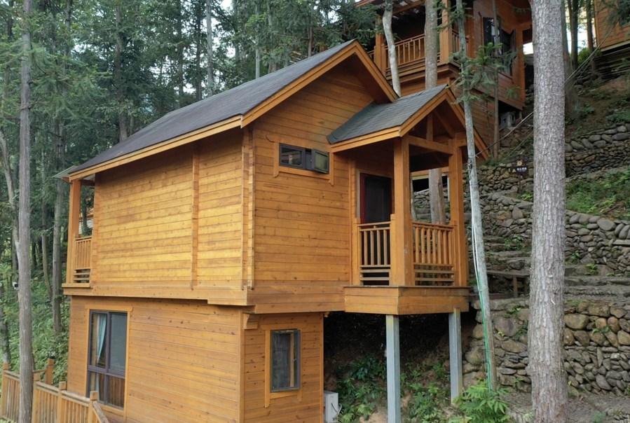 圖為武寧縣羅坪鎮長(cháng)水村悅山居民宿的林間木屋。新華社記者郭杰文 攝
