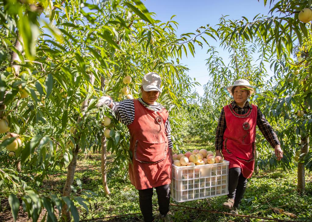2022年10月13日,在重慶市巫溪縣峰靈鎮譚家村,村民在搬運采摘的冬桃。新華社記者黃偉 攝