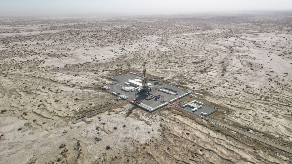 晌午,塔里木盆地,我國首個(gè)萬(wàn)米深地科探井——塔里木油田“深地塔科1井”機器轟鳴,找尋“深地寶藏”;