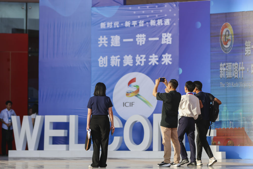 第十三屆中國新疆喀什·中亞南亞商品交易會(huì )在喀什國際會(huì )展中心開(kāi)幕,這是參觀(guān)者在喀什國際會(huì )展中心拍照(6月21日攝)。新華社記者 郝昭 攝