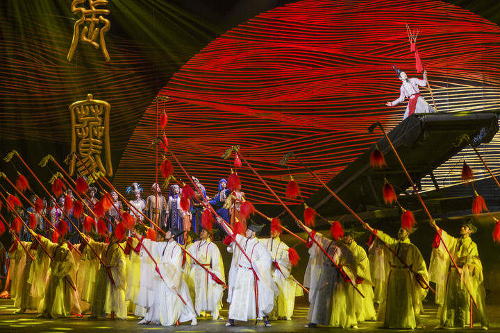 演員在新疆藝術(shù)劇院木卡姆藝術(shù)團劇場(chǎng)表演舞劇《張騫》(2022年4月22日攝)。新華社記者 王菲 攝