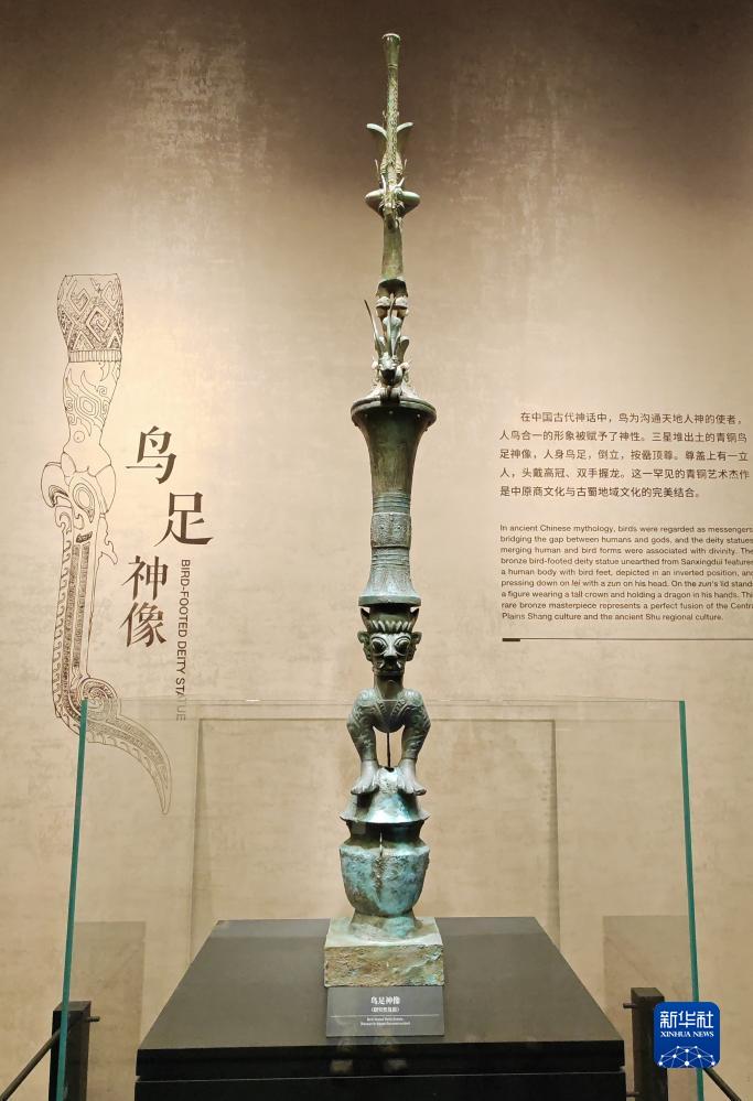 新華社成都8月1日電? 題:這尊青銅鳥(niǎo)足神像,印證中華文明多元一體