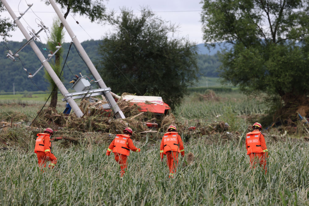 8月6日,吉林省吉林市消防救援支隊的消防救援人員在舒蘭市開(kāi)原鎮受災村莊進(jìn)行搜救。新華社記者 顏麟蘊 攝