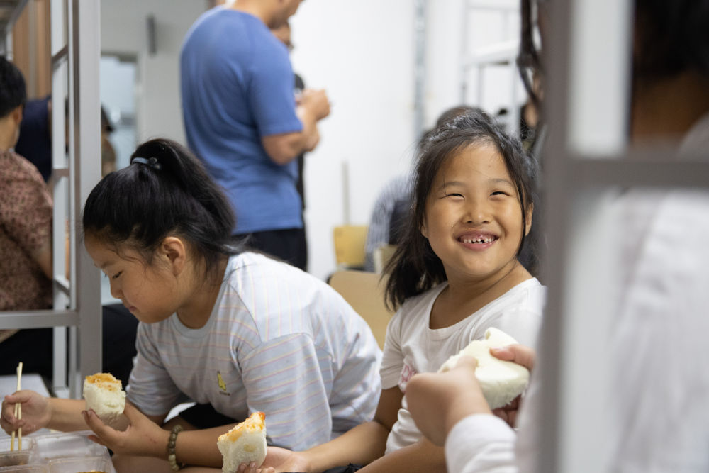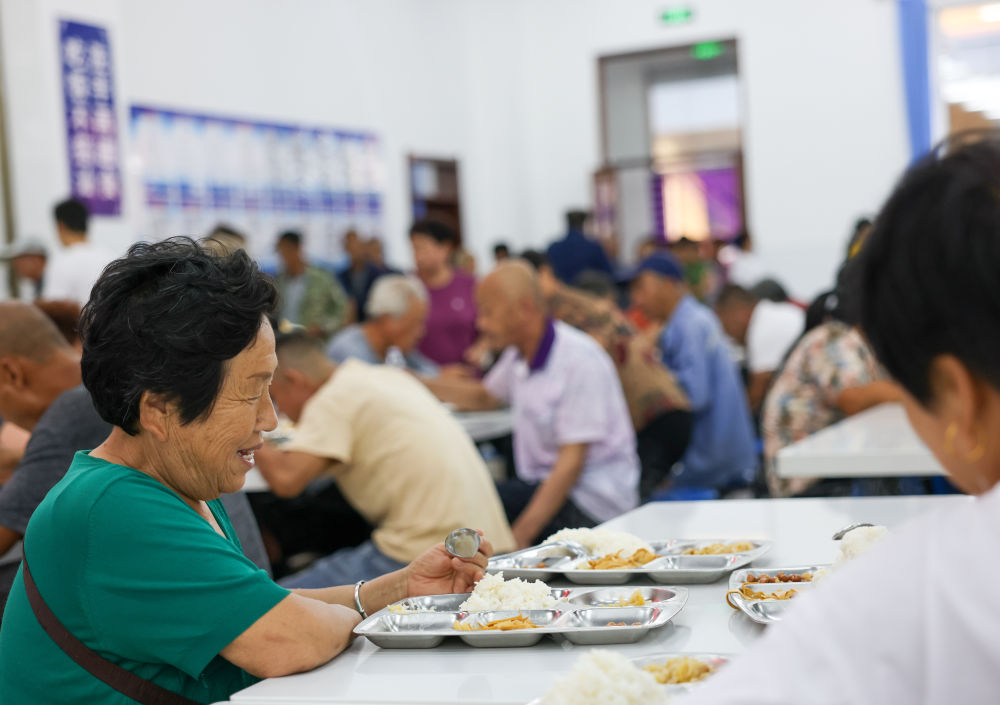 8月11日,居民在吉林省舒蘭市舒蘭三中安置點(diǎn)的食堂吃飯。新華社記者 顏麟蘊 攝