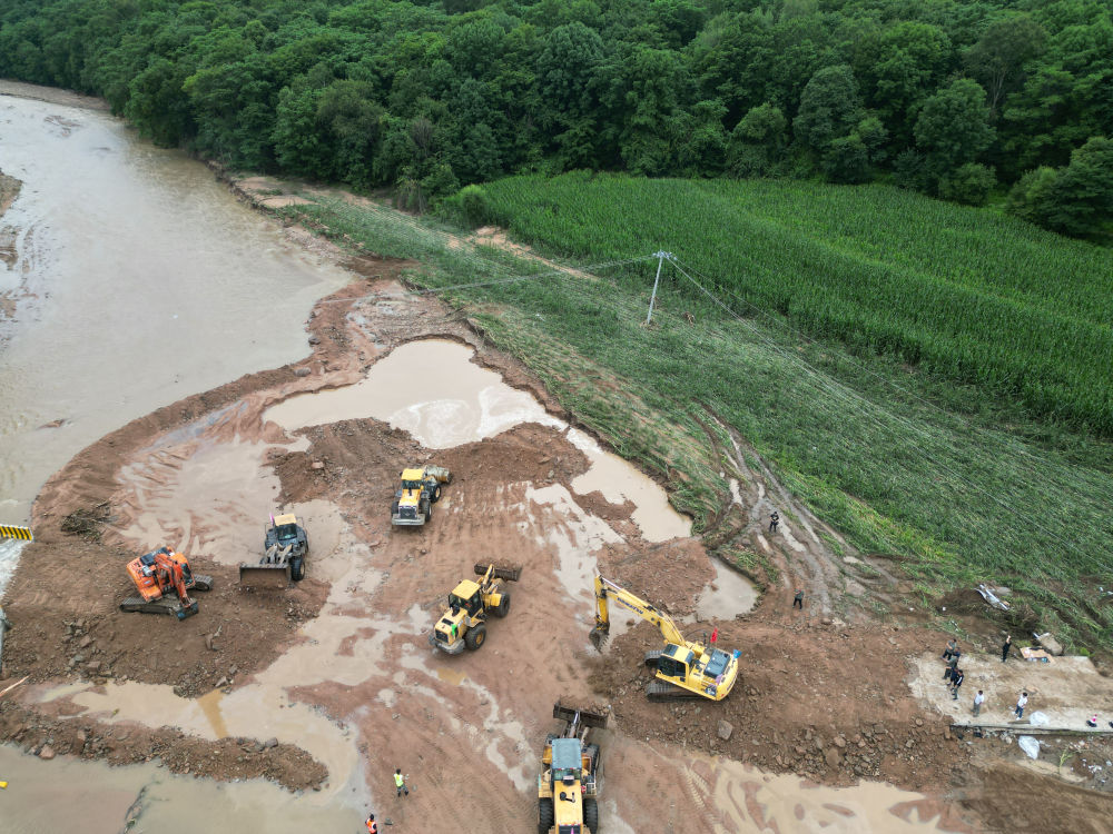 8月7日拍攝的吉林省舒蘭市開(kāi)原鎮青松林場(chǎng)附近的道路搶修現場(chǎng)。新華社記者 顏麟蘊 攝