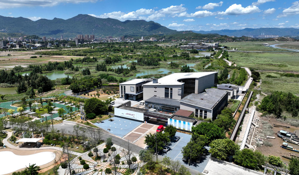 位于閩江河口濕地的濕地博物館全景(2022年8月25日攝,無(wú)人機照片)。新華社記者 魏培全 攝