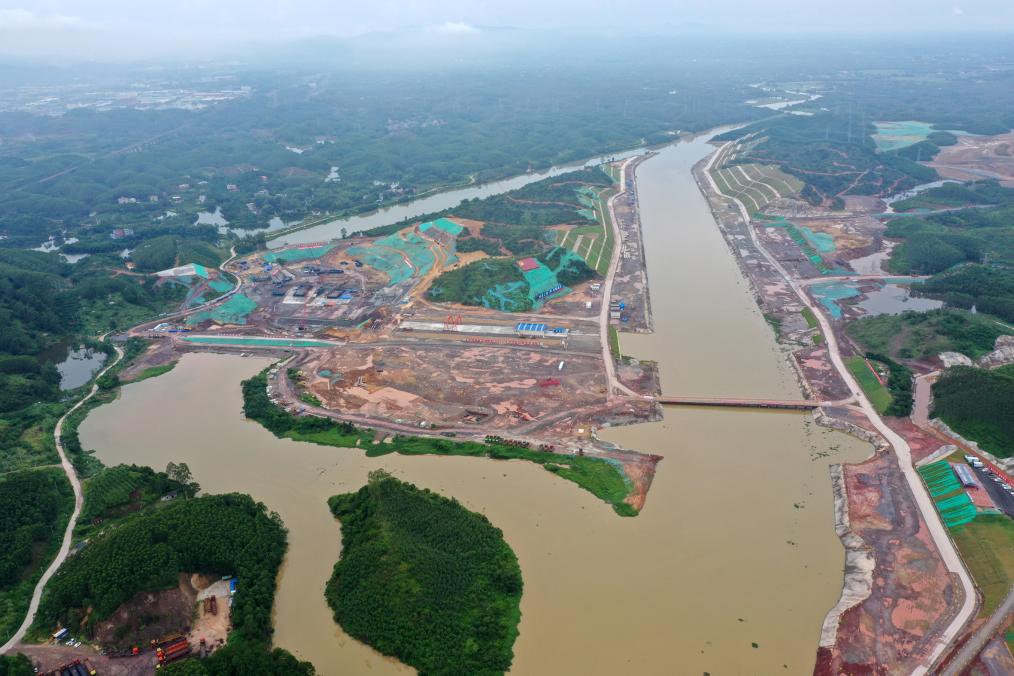 正在施工建設中的平陸運河青年樞紐(8月1日攝)。新華社記者陸波岸攝