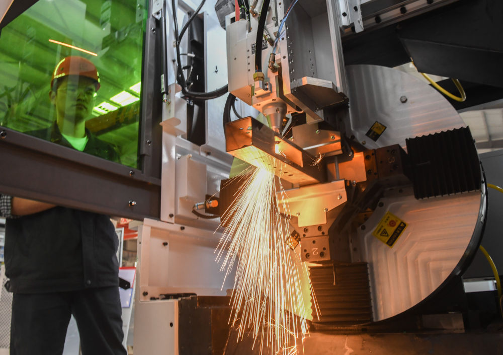 湖北武漢東湖高新區,“中國光谷”。走進(jìn)華工科技產(chǎn)業(yè)股份有限公司,激光切割機行云流水般在鋼材上雕琢,噴濺出耀眼火花。公司董事長(cháng)馬新強介紹,從首套國產(chǎn)化數控激光切割機,到首臺高性能光纖激光器,華工科技已創(chuàng )下60多項國內行業(yè)第一。