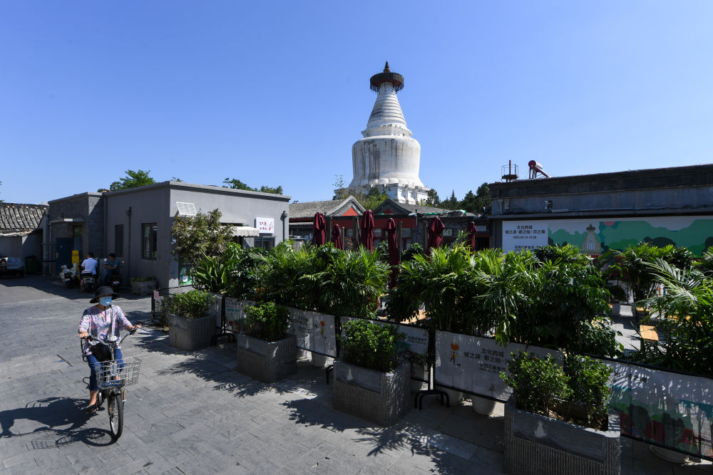 午后的北京西城區宮門(mén)口西岔胡同,居民們納涼聊天,一間間老字號燒餅店、特色咖啡廳、精釀啤酒館各成風(fēng)景。抬頭望去,青磚灰瓦與紅墻綠樹(shù)之上,妙應寺白塔莊重滄桑,古樸與現代相映成趣。