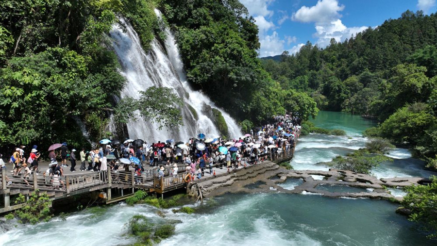 “今年小七孔接待游客已經(jīng)突破400萬(wàn)人。暑期接待中,省外客源占比大幅提升?!崩蟛ㄕ两L(fēng)景名勝區管理處辦公室主任裴庭靚說(shuō),高鐵開(kāi)通既是機遇也是挑戰,當地正在豐富旅游業(yè)態(tài),提升服務(wù)品質(zhì),讓游客留下來(lái)體驗。