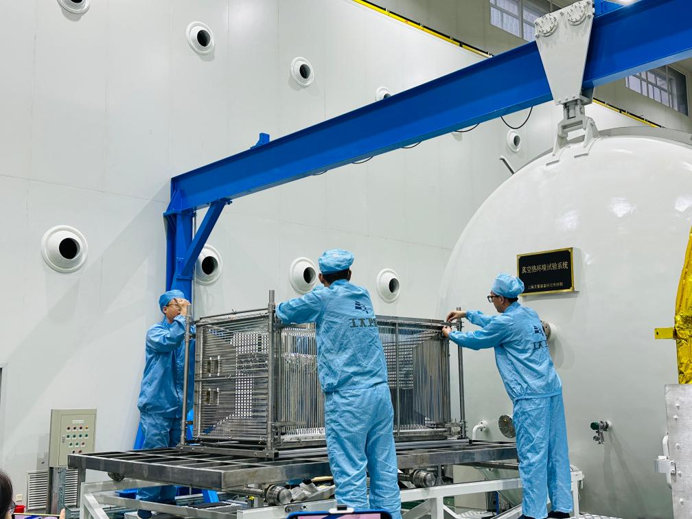 哈爾濱工大衛星技術(shù)有限公司工作人員正在進(jìn)行衛星熱實(shí)驗的準備工作。新華社記者孫曉宇 攝