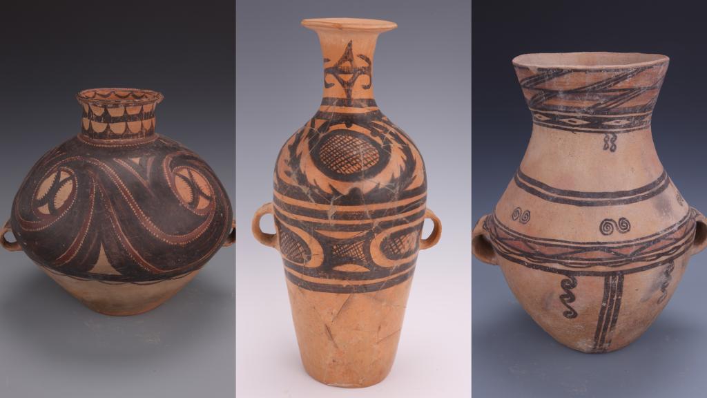 “這些彩陶最早可追溯至距今5000多年前,包括馬家窯文化、齊家文化、辛店文化等,見(jiàn)證了中華文明多元一體格局形成發(fā)展的演進(jìn)歷程?!泵褡逦幕瘜m博物館館長(cháng)陶穎介紹,其中,屬于仰韶文化石嶺下類(lèi)型的變體鯢魚(yú)紋陶瓶,記錄了史前時(shí)期中原仰韶文化向西發(fā)展至甘青地區、衍化為馬家窯文化的歷史。