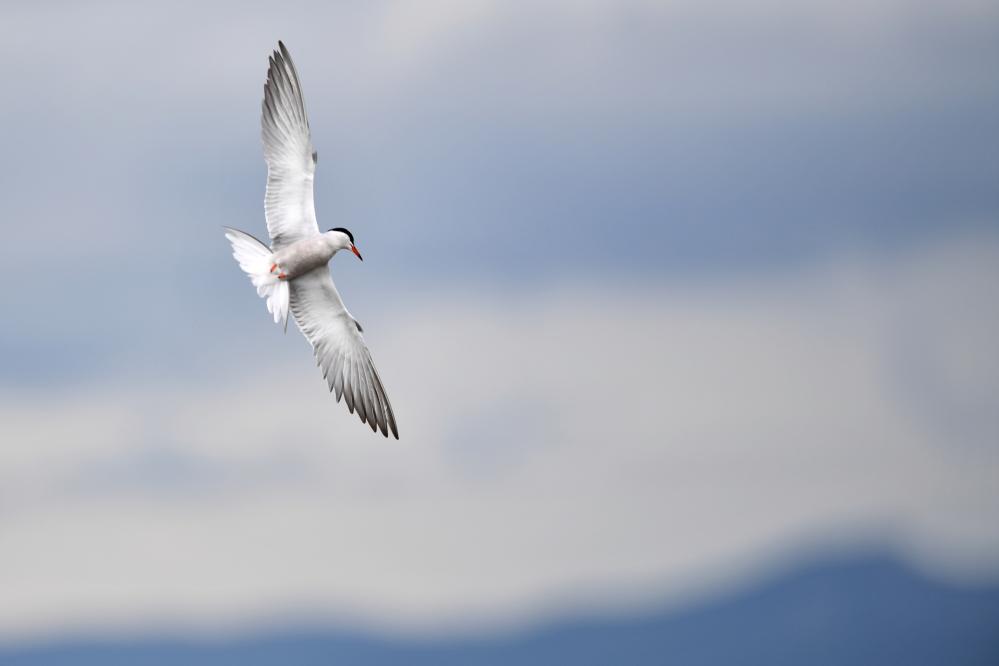 一只燕鷗在甘肅尕海則岔國家級自然保護區的尕海濕地上飛翔。 新華社記者 陳斌 攝