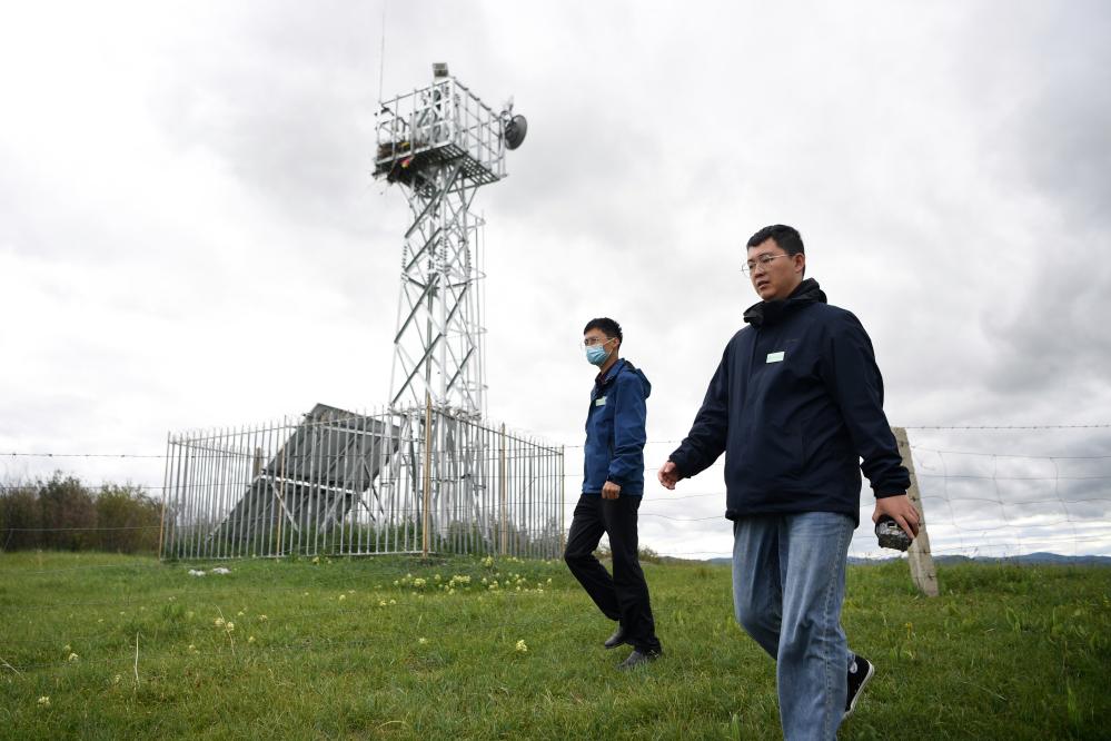 甘肅黃河首曲國家級自然保護區管護中心曼日瑪保護站的工作人員在保護區內檢查紅外相機的工作情況。 新華社記者 方欣 攝