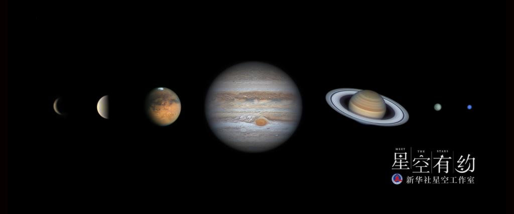 廣東省天文攝影愛(ài)好者周志偉2020年拍攝的水星、金星、火星、木星、土星、天王星、海王星(多張疊加)。(本人供圖)