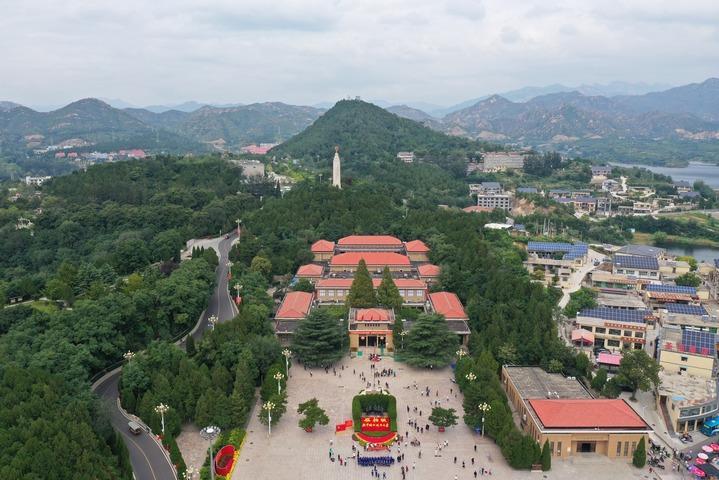 這是河北省石家莊市平山縣西柏坡紀念館外景(9月23日攝,無(wú)人機照片)。新華社記者 牟宇 攝