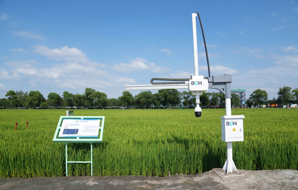 這是2023年8月10日在北大荒集團閆家崗農場(chǎng)有限公司農業(yè)現代化示范區拍攝的利用數字技術(shù)的葉齡診斷儀。新華社記者 王建威 攝