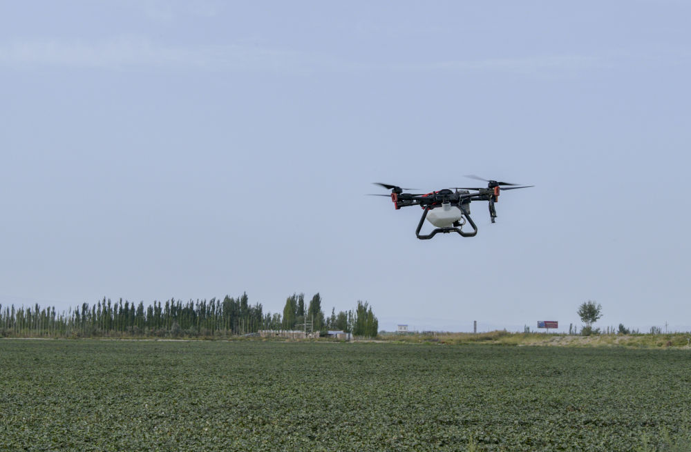 這是2023年9月18日在新疆巴音郭楞蒙古自治州尉犁縣“超級棉田”拍攝的農業(yè)無(wú)人機。新華社記者 郝建偉 攝