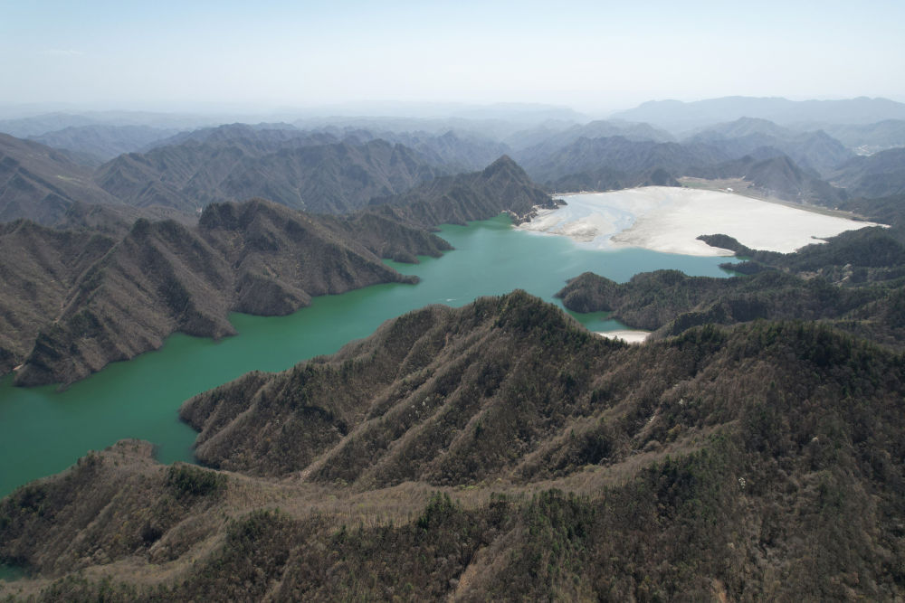 經(jīng)過(guò)生態(tài)治理的渭南市華州區金堆鎮栗西溝尾礦庫(2022年4月7日攝,無(wú)人機照片)。新華社記者 邵瑞 攝
