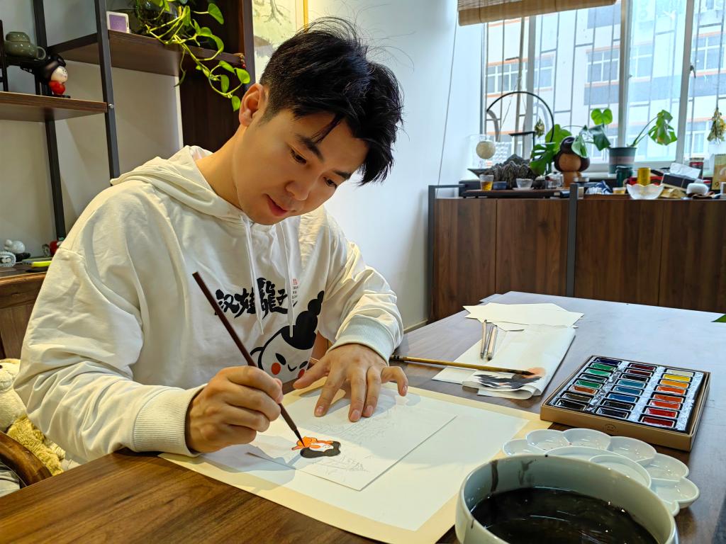 新華社西安10月14日電(記者孫正好)展開(kāi)扇面,研墨,提筆,在水墨線(xiàn)條的勾勒下,一個(gè)微胖還有點(diǎn)“霸道”的唐朝小妞很快躍然紙上。作畫(huà)者是被諸多文創(chuàng )愛(ài)好者喚作“唐妞爸爸”的青年設計師喬喬。