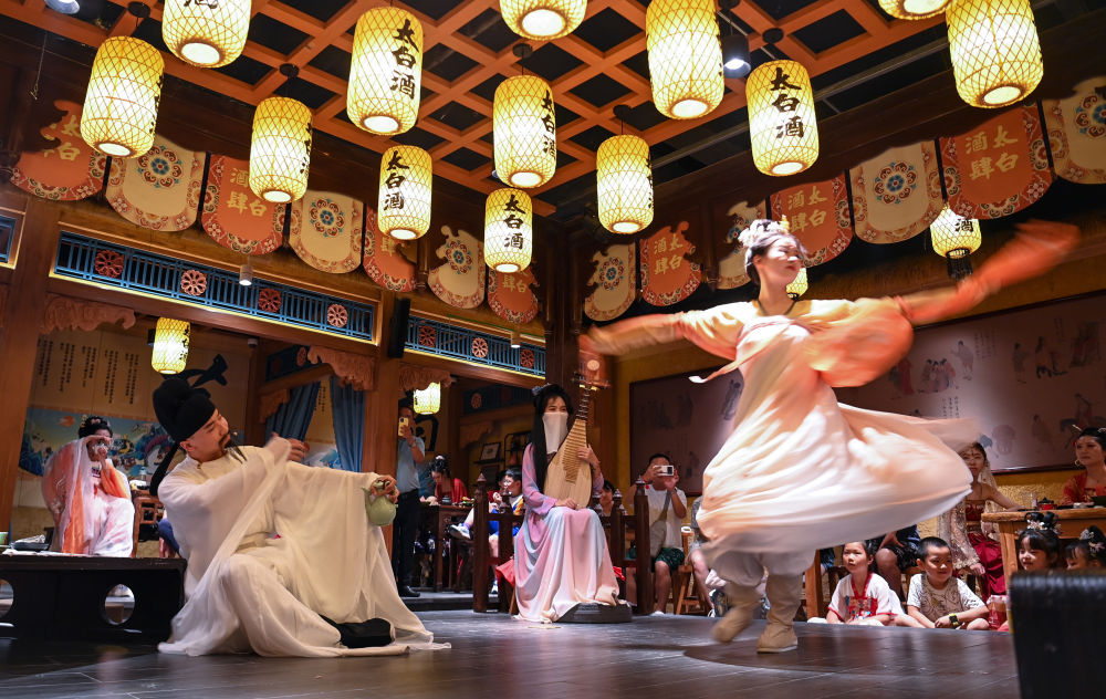 西安大唐不夜城,從寫(xiě)滿(mǎn)詩(shī)詞的燈飾下穿行,與唐裝“仕女”擦肩而過(guò),“李白”正于燈火闌珊處邀游客吟詩(shī)作對。走進(jìn)“長(cháng)安十二時(shí)辰”主題街區,恍若夢(mèng)回大唐,數十臺唐文化主題演藝一步一景。歷史文化融入主題演藝,文旅消費活力激增。