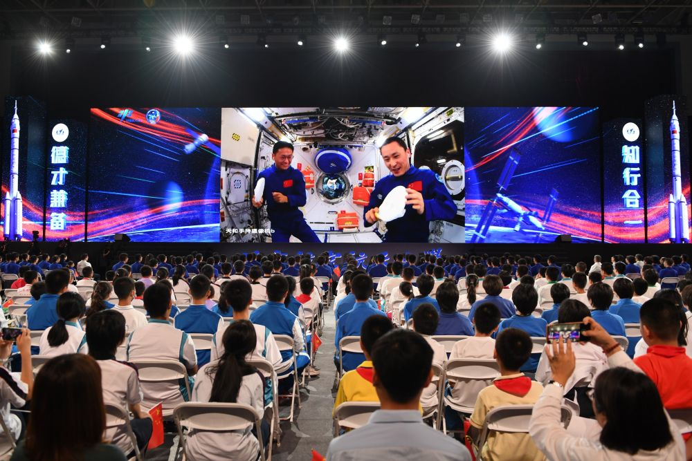 授課活動(dòng)分別在北京、內蒙古阿拉善盟、陜西延安、安徽桐城及浙江寧波設置了5個(gè)地面課堂,約2800名學(xué)生代表參加了現場(chǎng)活動(dòng)。授課期間,航天員通過(guò)視頻通話(huà)形式與地面課堂師生進(jìn)行了實(shí)時(shí)互動(dòng)交流。