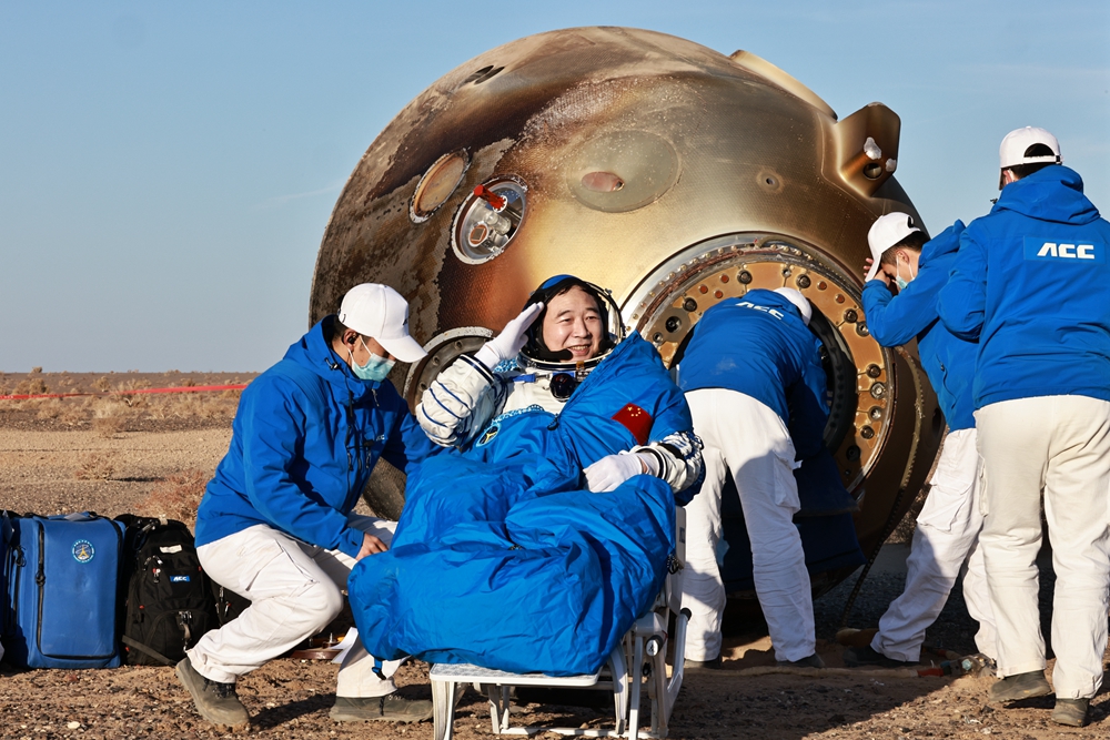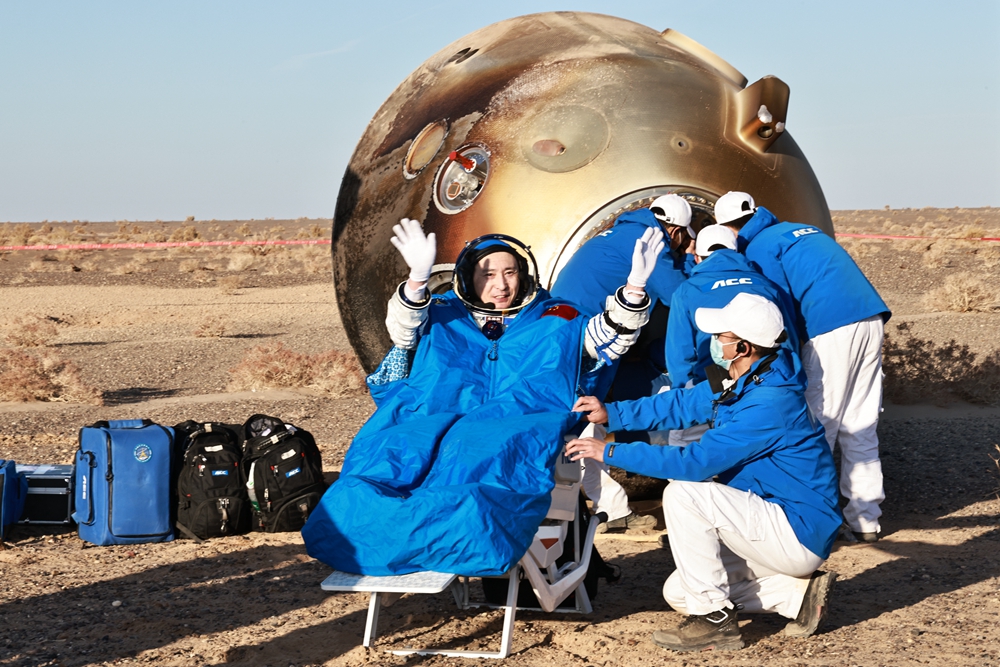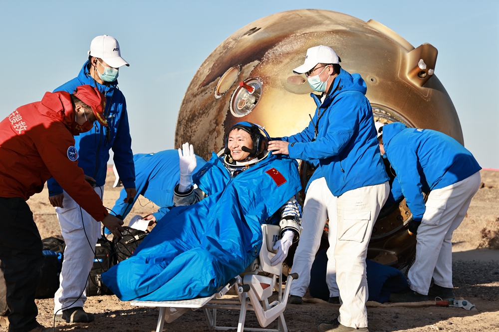 約50分鐘后,飛船返回艙成功降落在東風(fēng)著(zhù)陸場(chǎng)。艙門(mén)打開(kāi)后,3名航天員順利出艙,身體健康狀態(tài)良好,中國空間站應用與發(fā)展階段首次載人飛行任務(wù)完美收官。