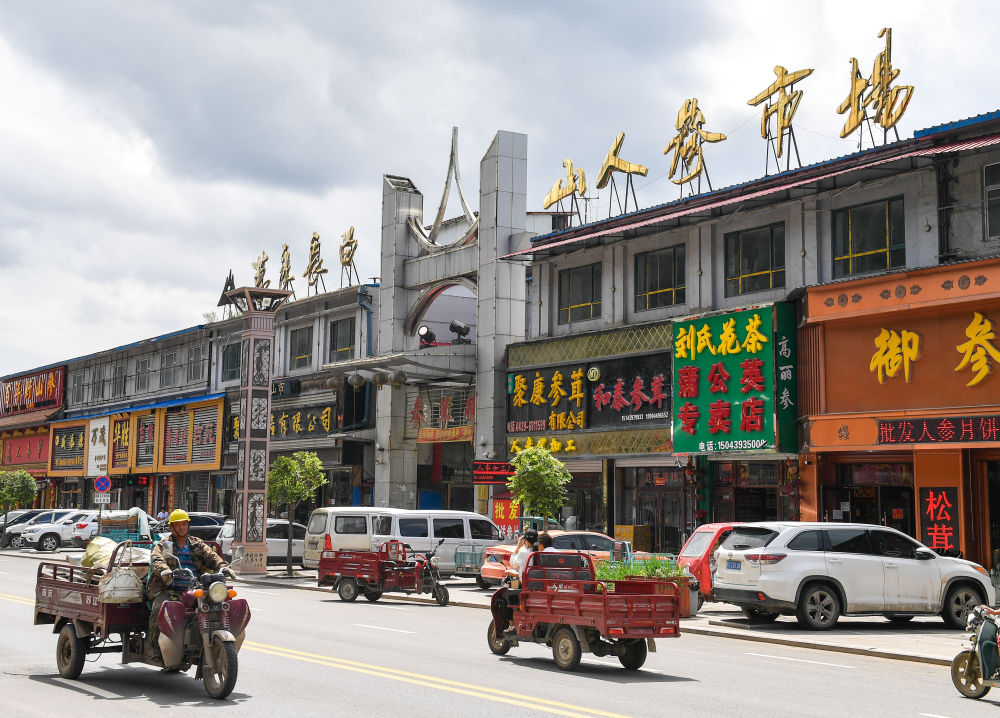 這是2020年8月28日在吉林省撫松縣萬(wàn)良鎮拍攝的萬(wàn)良長(cháng)白山人參市場(chǎng)。新華社記者 許暢 攝