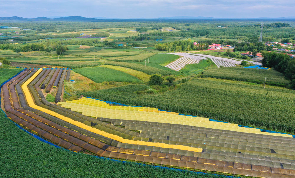 這是2020年8月28日在吉林省撫松縣萬(wàn)良鎮大方村旁拍攝的人參種植大棚(無(wú)人機照片)。新華社記者 許暢 攝