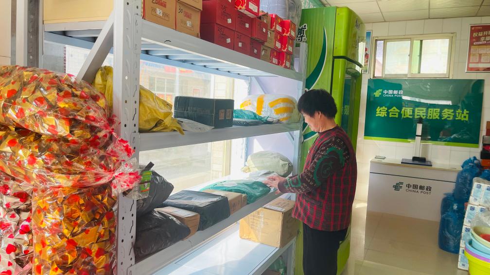 高墩營(yíng)村綜合便民服務(wù)站內,負責人正在整理包裹。新華社記者李杰 攝