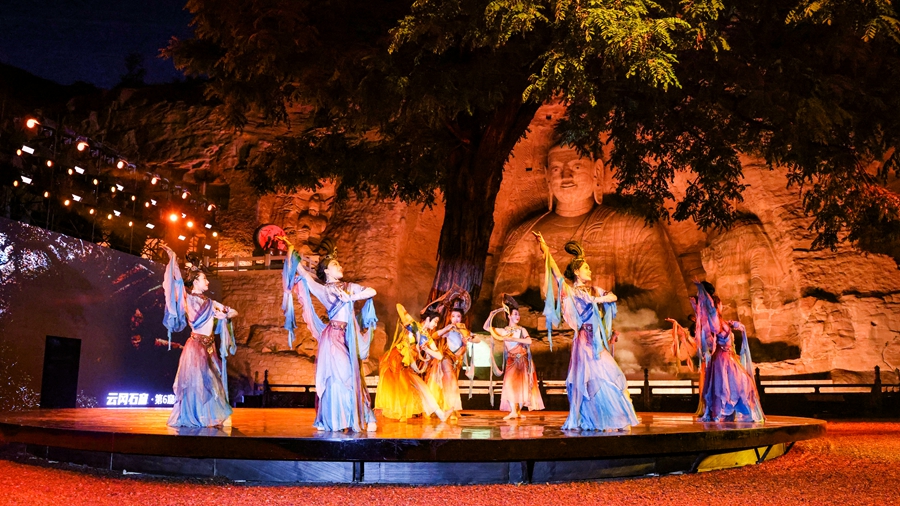 在山西云岡石窟,一場(chǎng)名為“又見(jiàn)云岡”的大型實(shí)景演出上演,1000余人現場(chǎng)觀(guān)看,近100萬(wàn)人線(xiàn)上觀(guān)看,人們被經(jīng)由現代藝術(shù)演繹的傳統文化之美所打動(dòng)。