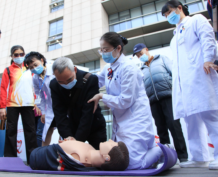 部分醫院開(kāi)展義診活動(dòng),指導市民進(jìn)行心肺復蘇演練。新華社發(fā)