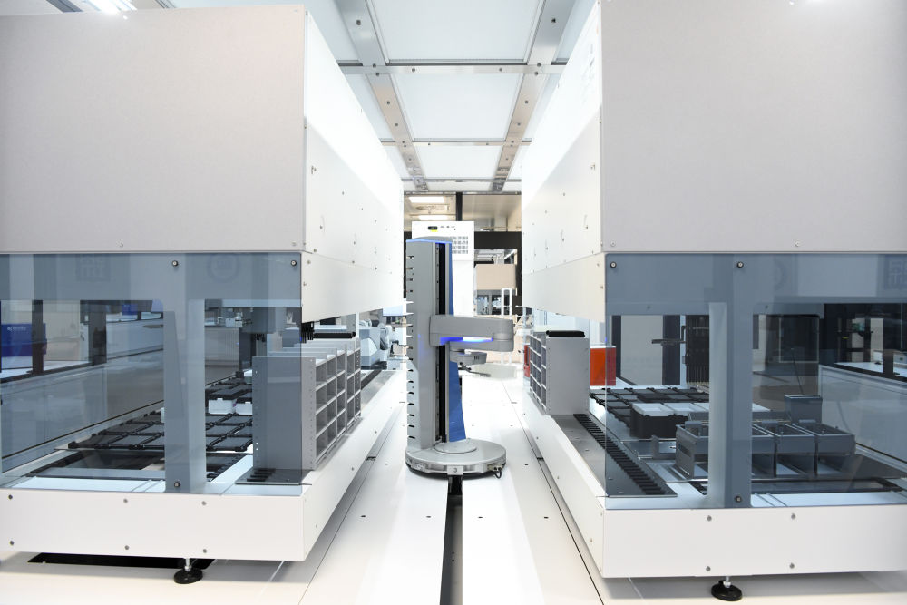 在一個(gè)個(gè)透明的功能島里,機械臂正熟練地把多個(gè)生物試劑和樣品準確地放進(jìn)微孔板,自動(dòng)化小車(chē)在各個(gè)功能島之間來(lái)往運送實(shí)驗用品,一個(gè)智能化的“生命鑄造工廠(chǎng)”井然有序地運轉。