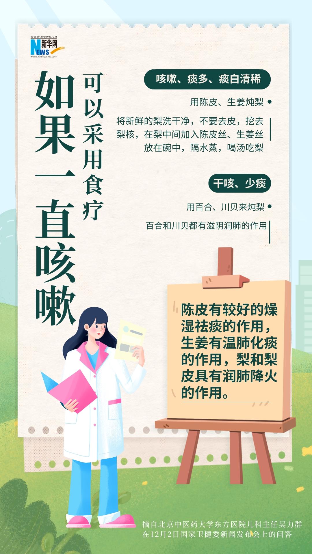 此外,張忠德也介紹了一些中醫療法,如用風(fēng)筒幫孩子吹大椎,用生姜擦擦氣管部位,有助于緩解咳嗽,前提是孩子沒(méi)有重癥肺炎和其他比較重的癥狀,如果有,要中西醫結合治療,及時(shí)去醫院做相關(guān)檢查。(策劃/海報設計:王瑩? 終審:陳競超? 綜合國家衛健委近期新聞發(fā)布會(huì )內容)